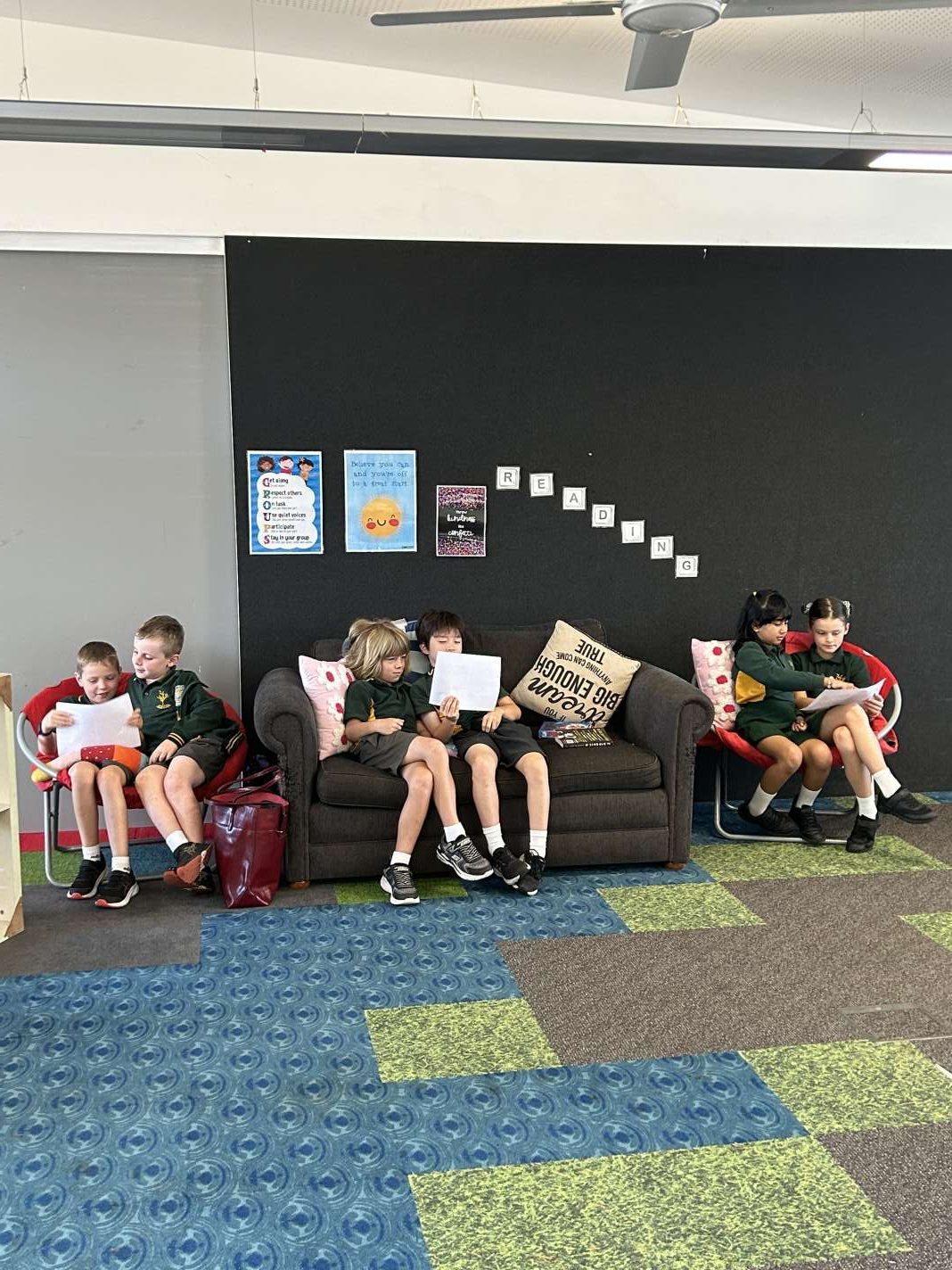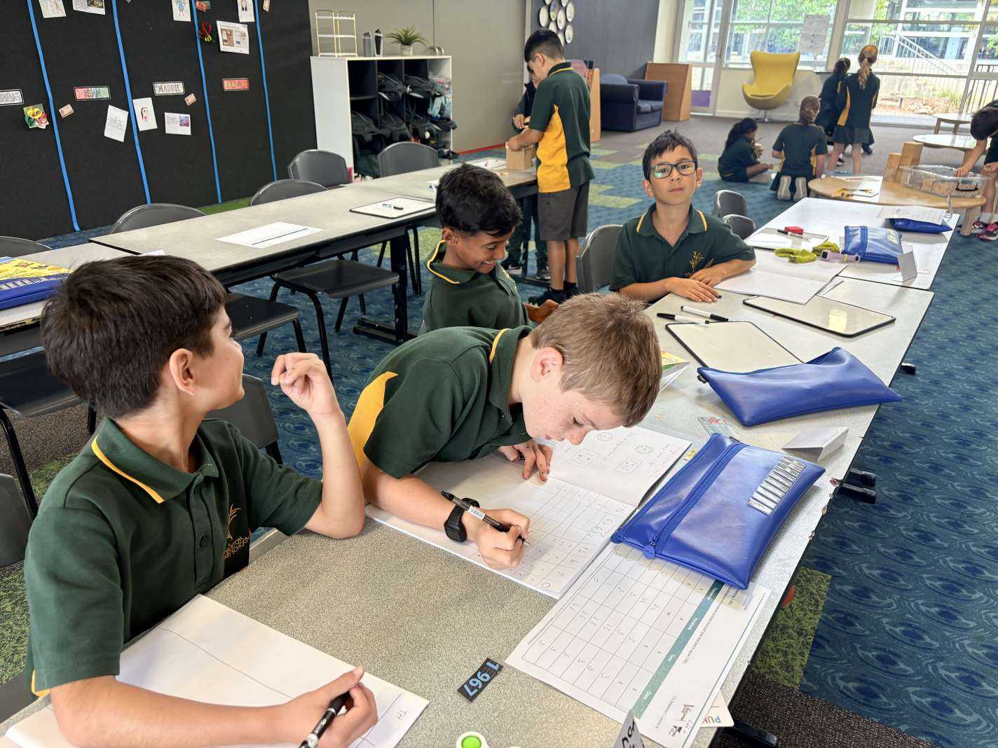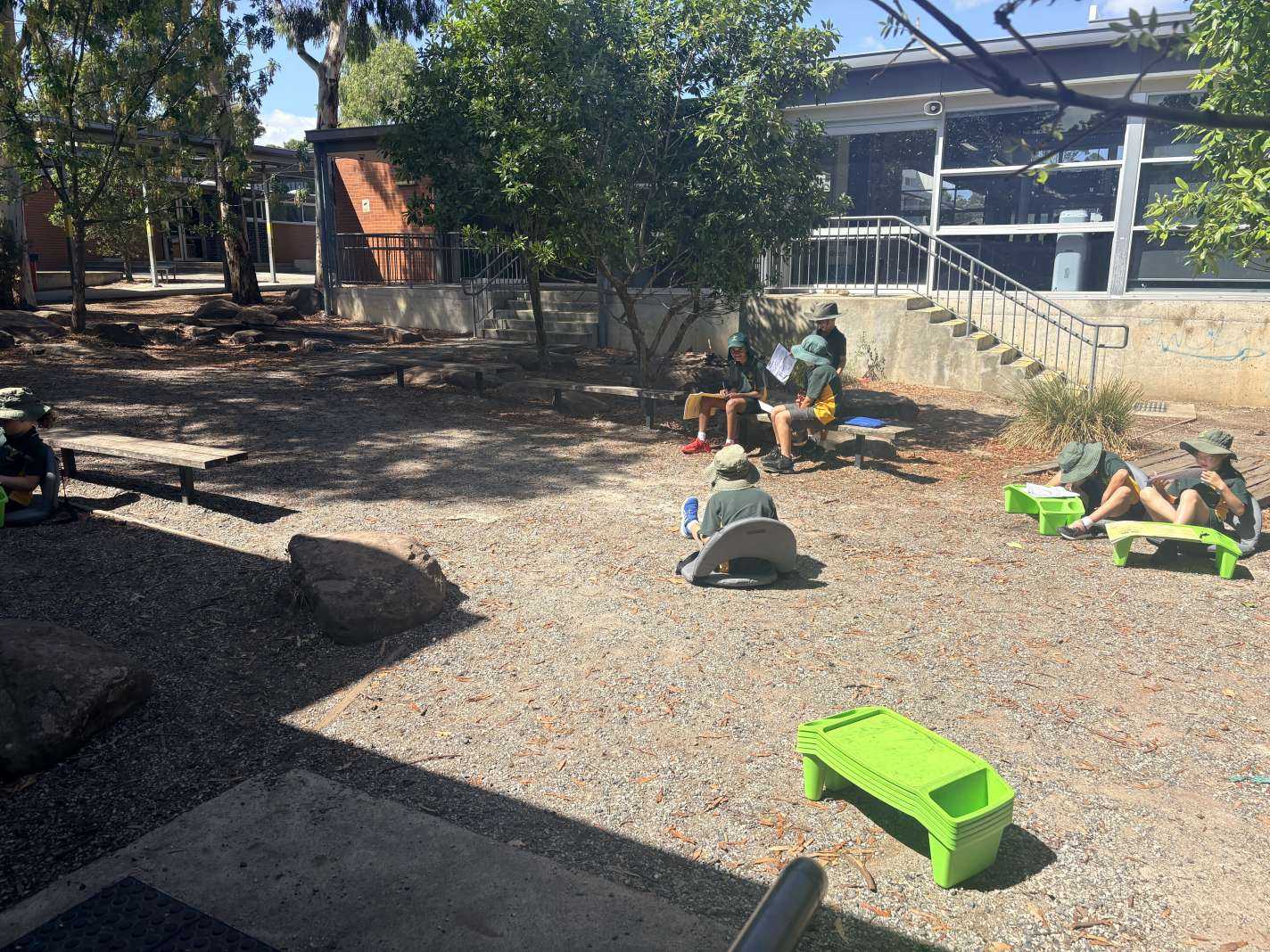 We have been enjoying our lovely class spaces and using them to do lots of group work, independent work and games. We have also been exploring the new grass on the oval and our luscious new play space.